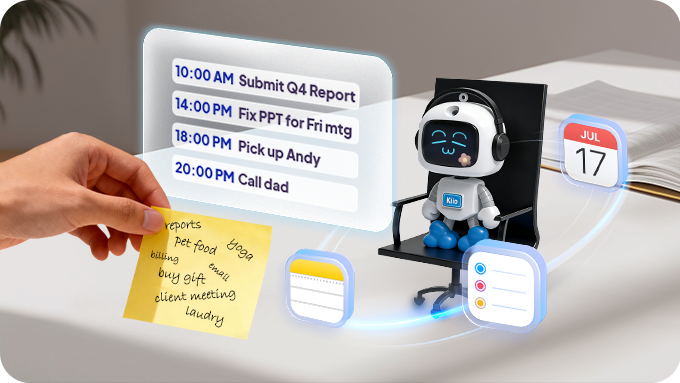 With deep understanding of 22+ languages, Kiio breaks down communication barriers. It can accurately summarize a report in English, translate a family message from Mandarin, and add a German business meeting to your calendar—all in natural conversation. No matter where you are or who you‘re connecting with, Kiio ensures you’re perfectly understood and assisted.